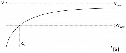 On en déduit donc l’équation de Michaelis et Menten : $$ v_{i} = \frac{v_{max}[S]}{K_{M} + [S]}$$