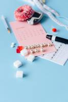 Le lecteur de glycémie (au centre) permet de suivre soi-même sa glycémie. Il faut au préalable piquer la peau à l'aide de l'autopiqueur (posé sur la table). La goutte de sang est placée sur une bandelette elle-même insérée dans le lecteur. La glycémie est ici de 5,3 mmol/L. Une glycémie « normale » ...