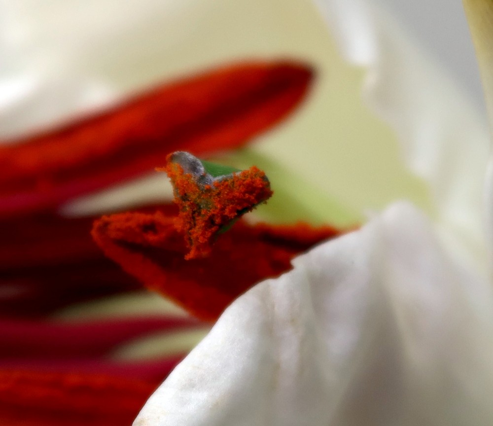 L'observation en microscopie optique permet de distinguer la cellule générative, incluse dans la cellule végétative. Le grain de pollen est entouré d’une paroi.