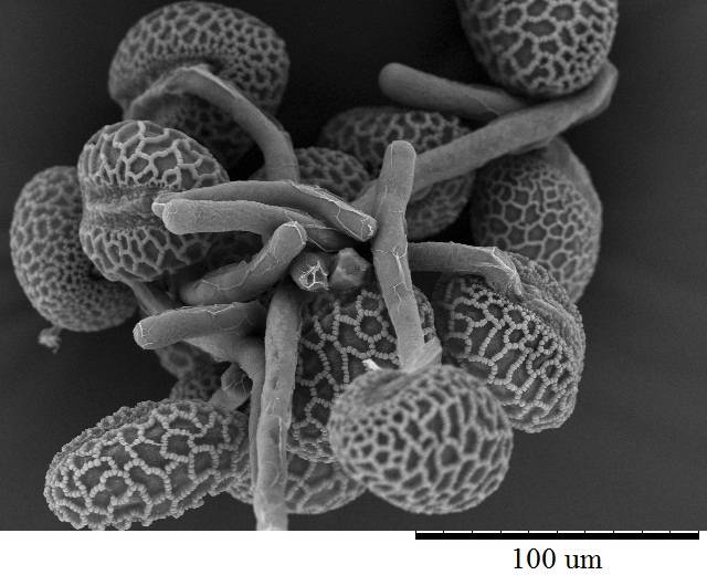 La paroi a un aspect réticulé dû à la présence d’épaississements plus marqués à certains endroits. On distingue une zone plus uniforme formant un sillon : c’est l’aperture, qui joue un rôle dans les échanges d’eau avec l’extérieur et dans la germination du pollen.
