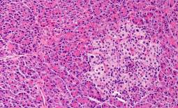 Les résultats présentés ici ont été obtenus chez des chiens témoins et chez des chiens atteints de diabète. Chez les chiens, le diabète est associé à une diminution du nombre de cellules β des îlots de Langerhans du pancréas, comme pour le diabète de type 1 de l’être humain. A. Nombre de cellules β ...