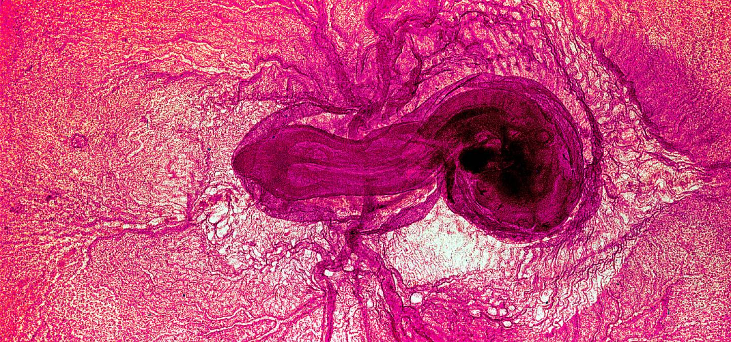 La pince de Stefan permet de bloquer l'afflux sanguin dans les artères, d'un côté de l'embryon. |