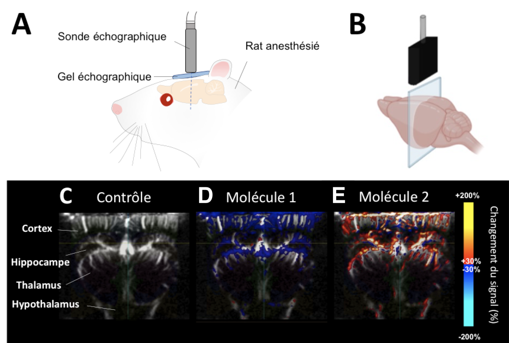 L’imagerie fonctionnelle ultrasonore est pour l’instant utilisée principalement comme outil de recherche préclinique chez le rat et la souris, car l’épaisseur du crâne chez l’humain continue d’être un élément limitant la qualité du signal.