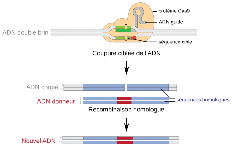 - une protéine Cas9, préalablement associée à l’ARN guide ;