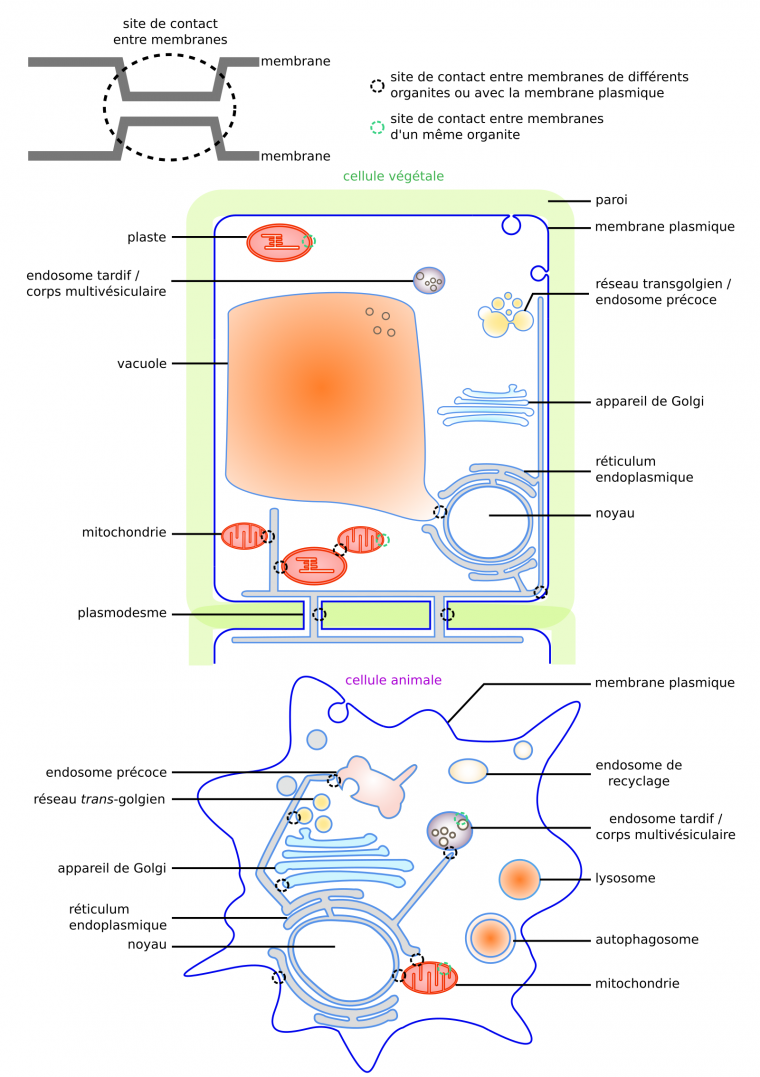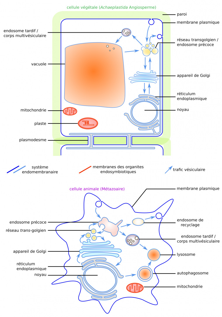 Cellule végétale (haut) et cellule animale (bas). Adapté de [14].