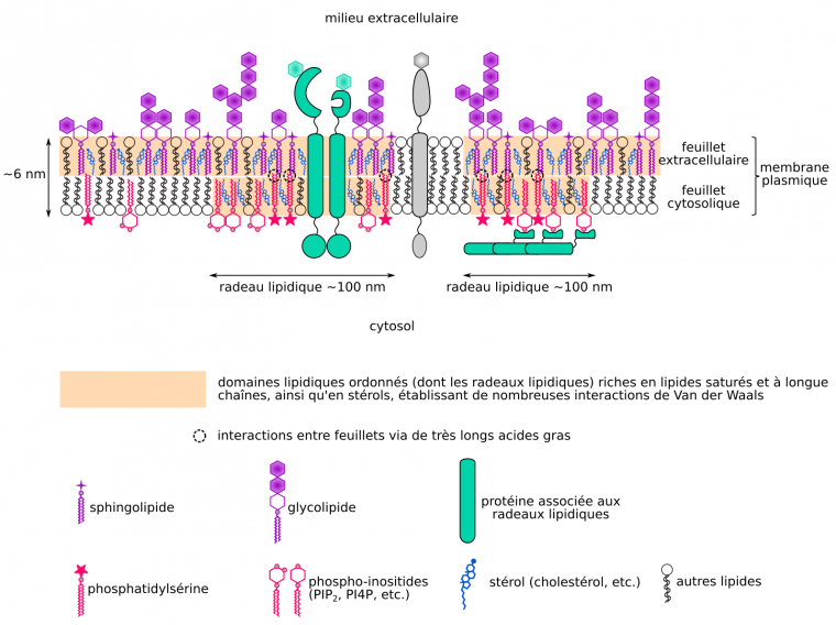 Certaines portions des feuillets membranaires sont en phase liquide ordonnée (radeaux lipidiques formant des nanodomaines notamment), tandis que d’autres sont en phase désordonnée.