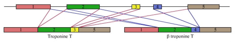 À partir du même préARNm peuvent être obtenus deux ARNm matures différents codant pour deux isoformes de la troponine, une molécule impliquée dans la structure des myofibrilles (voir l'article La contraction musculaire).