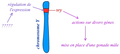 La compréhension des mécanismes génétiques expliquant la détermination du sexe a été rendue possible par l’étude d’anomalies présentes chez des malades. Ces études ont permis de montrer ainsi le rôle fondamental du gène SRY. Ce gène semble permettre un développement de type masculin. Il apparaît que la régulation de son expression est fondamentale. SRY pourrait agir en inhibant un inhibiteur (« le modèle Z »). On trouve de nombreux autres gènes impliqués dans la détermination du sexe.