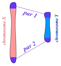 Les chromosomes X et Y des Mammifères présentent deux zones d’homologies (PAR 1 et PAR 2), vestiges de leur origine commune.