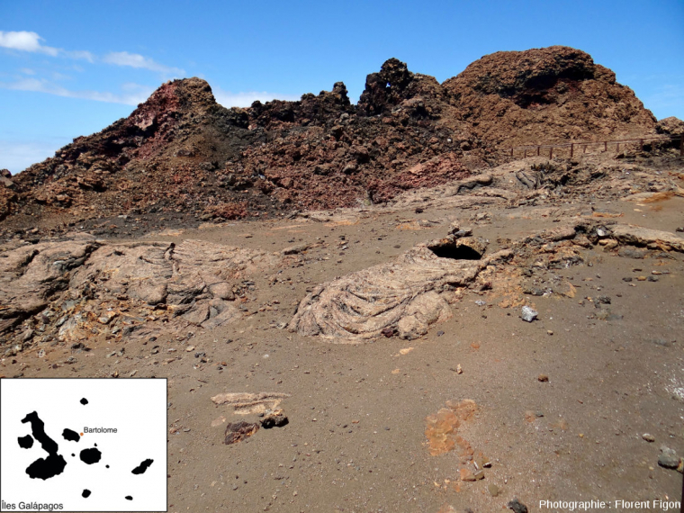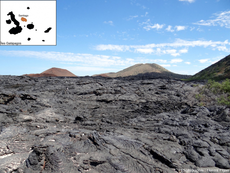Vous pouvez retrouver d’autres exemples de cônes adventifs dans Cônes adventifs sur les flancs du Pico (volcan des Açores), dont l’un a été aménagé en enclos à bétail, et de coulées pahoehoe dans Laves « en tripes » (entrail pa hoe hoe lava flow), Piton de la Fournaise, île de la Réunion.