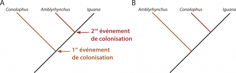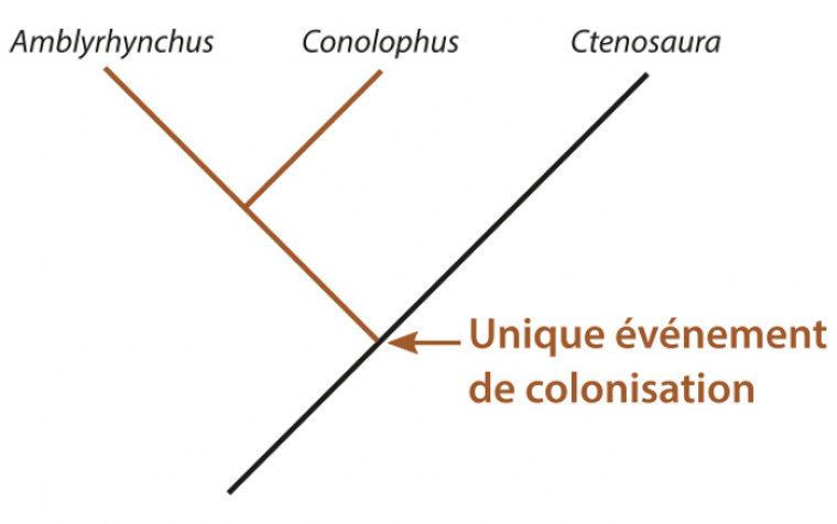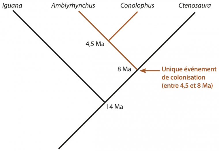 L’ensemble des données concernant ces deux genres d’iguanes aux modes vies opposés pose la question de leur histoire évolutive et donc de leur origine. Sont-ils très apparentés ? Proviennent-ils d’une même population d’iguanes qui ont colonisé les Galápagos ? Comment cette population a-t-elle pu atteindre des îles si éloignées ? Quand et combien de fois cela s’est-il produit ?