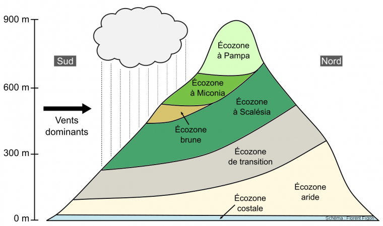 Comme on l’a vu précédemment, lorsqu’une île est ancienne, son climat et sa végétation sont très dépendantes de sa géographie et de sa géomorphologie.