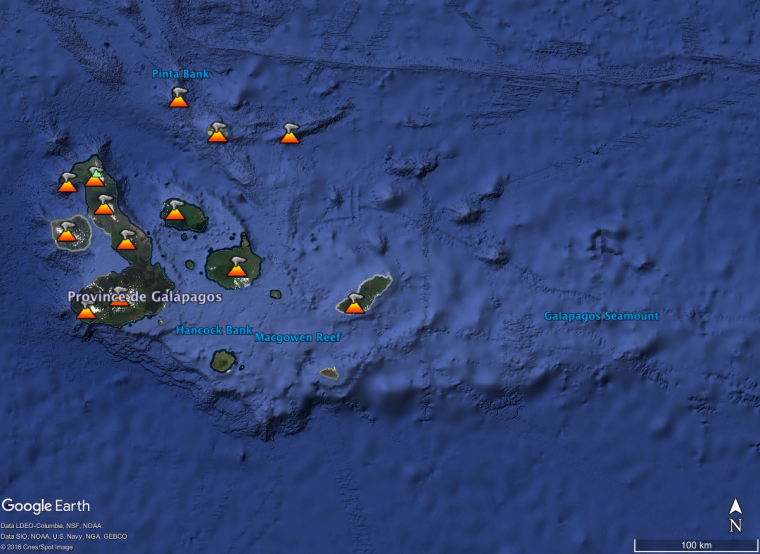 La plupart des volcans des Galápagos sont en activités, les plus orientaux sont endormis. Les îles les plus anciennes se situent à l’Est, les plus récentes à l’Ouest.