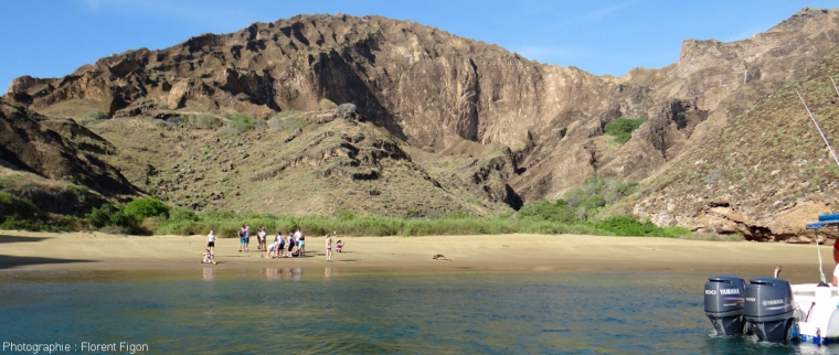 L’écozone costale est la première bande végétale visible sur cette photo. Elle est principalement constituée de plantes grasses résistantes à la dessiccation et aux hautes teneurs en sels, et parfois de mangroves. La zone aride se situe sur les pentes en arrière-plan. Celle-ci est moins dense en végétaux.