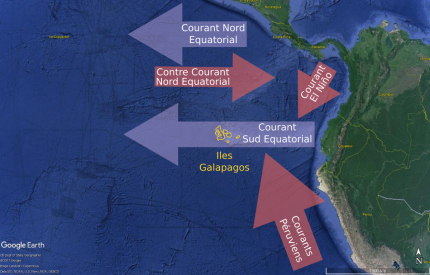 - les courants marins et les vents sont tels qu’un radeau dérivant depuis la côté Sud-américaine aurait de grandes chances d’atteindre les Galápagos en deux semaines à peine.