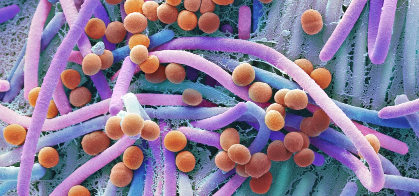 L’intestin humain héberge un microbiote bactérien abondant et diversifié, notamment dans le côlon. Ce dernier contiendrait même jusqu’à 1014 bactéries qui pèseraient au total près de 500 grammes 1. Loin d’être de simples commensales, ces bactéries sont bénéfiques à l’être humain de multiples façons. Tout d’abord, elles ont un rôle dans la nutrition en participant à la digestion des fibres végétales et en produisant des acides aminés et des vitamines essentiels, comme la vitamine K. Elles contribuent également à la protection de l’organisme en évitant que des bactéries pathogènes ne trouvent refuge dans l’intestin. Enfin, elles établissent dès la naissance un dialogue permanent avec le système immunitaire de l’intestin. Le microbiote intestinal bactérien participe ainsi au développement et à la régulation du système immunitaire humain.