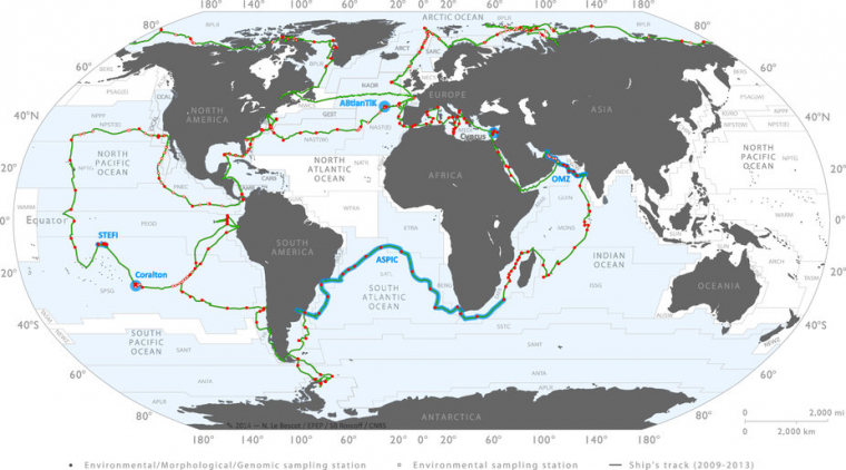 La quantité d’ADN séquencé correspond à environ deux millions de génomes bactériens, ou à peu près deux mille génomes humains. Le catalogue de gènes issu de ces travaux comprend 40 millions de gènes de virus, de procaryotes et de pico-eucaryotes marins, nouveaux pour la plupart (> 80 %). Il permet de cartographier la diversité fonctionnelle de ces microorganismes océaniques et constitue une ressource fondamentale pour de nombreuses études scientifiques à venir.