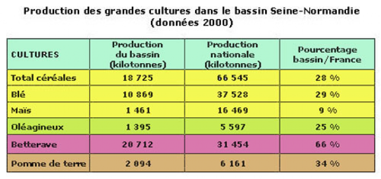 - l’utilisation croissante des produits phytosanitaires (herbicides, fongicides ou insecticides). Par exemple, les cultures à forte valeur ajoutée, comme la vigne du bassin Seine-Normandie (Champagne et Chablis), poussent les agriculteurs à utiliser des doses importantes en produits phytosanitaires.