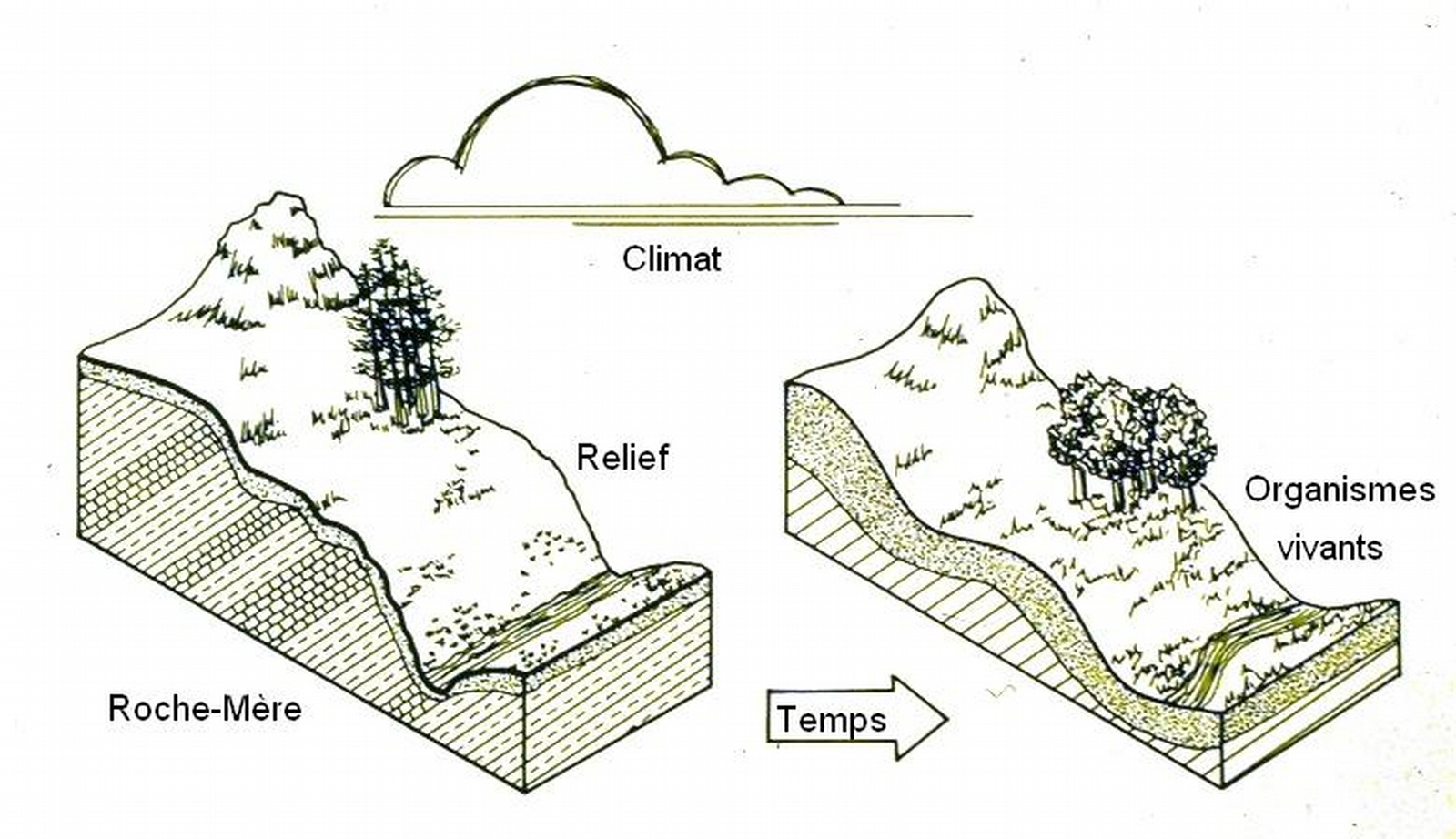 L’organisation de la couverture pédologique est donc à quatre dimensions : trois spatiales et une temporelle.