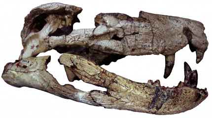 Les premiers, les Notosuchiens, forment un groupe quasi exclusivement terrestre, seules quelques formes étant fluviatiles (Pol et Leardi, 2015). Leur morphologie est très éloignée des crocodiles amphibies actuels. Leurs membres sont longs et fins, érigés à la verticale sous leur corps, laissant supposer un mode de vie uniquement terrestre et non aquatique. Leur crâne est plutôt compact, avec un museau court et haut, loin des crânes aplatis des crocodiles actuels. Beaucoup d’entre eux, les Sébécosuchiens, ont de longues dents crénelées à la manière des dinosaures Théropodes, et la forme de leur crâne haut et compact, n’est pas si éloignée de la morphologie de ces derniers (Godoy et coll., 2014) (Fig. 3). Ils étaient probablement de redoutables prédateurs, chassant leurs proies à l’affût et courant aisément sur de courtes distances grâce à leurs longs membres verticaux. Parmi les Notosuchiens, bien qu’ayant une morphologie assez similaire, certaines espèces ont des dents de formes et d’implantation particulièrement étranges, et les paléontologues se sont longtemps interrogés sur le mode alimentaire de ces animaux. Leurs dents portent de nombreux bulbes, à la manière des dents de certains Mammifères avec lesquelles elles ont parfois été confondues, quand d’autres espèces ont des dents triangulaires, avec de grosses crénelures orientées non pas antéro-postérieurement comme chez tous les Crocodyliformes, mais en biais par rapport à l’axe du crâne (Iori et coll., 2013). Cette morphologie dentaire complètement atypique est considérée comme une possible adaptation à un régime alimentaire uniquement phytophage – un trait surprenant pour des Crocodyliformes.