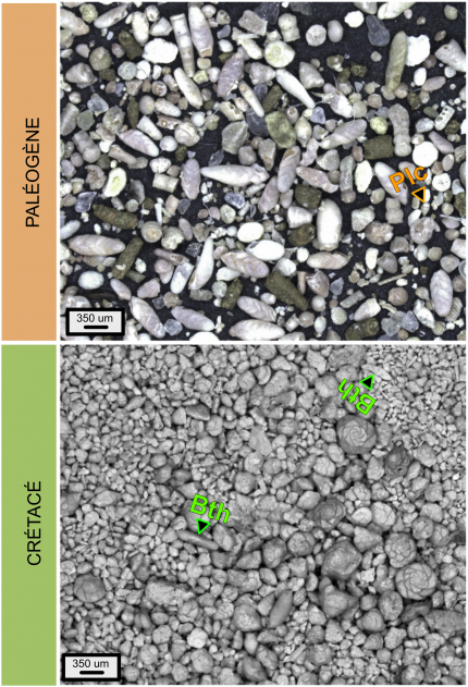 Célèbre pour ses conséquences sur les dinosaures non aviaires, la crise Crétacé-Paléogène, il y a 66 millions d'années, a très fortement affecté le plancton. Très diversifiés au Crétacé supérieur, les foraminifères planctoniques vont brutalement se raréfier à la base du Paléogène. Les modalités de traversée de la crise par ce groupe font toujours débat.