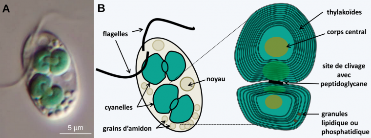 B. Schéma de l’ultrastructure de la cryptophyte Guillarda theta.
