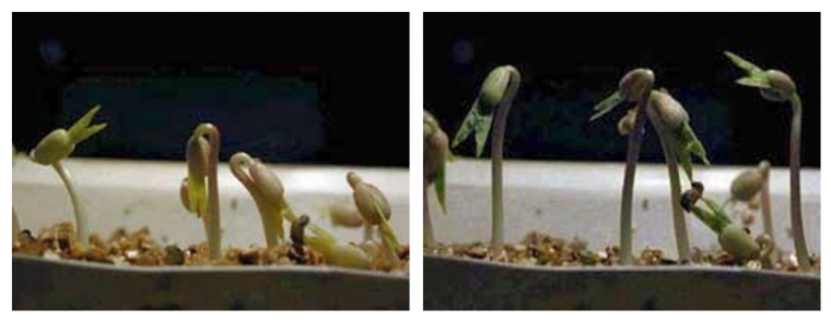 En effet, comme les coléoptiles, à partir d’un certain stade, la croissance de son hypocotyle est principalement due à de l’auxèse.