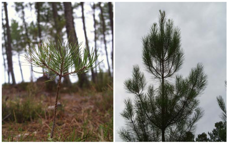 ici sur l’exemple d’un pin à deux stades de son développement.