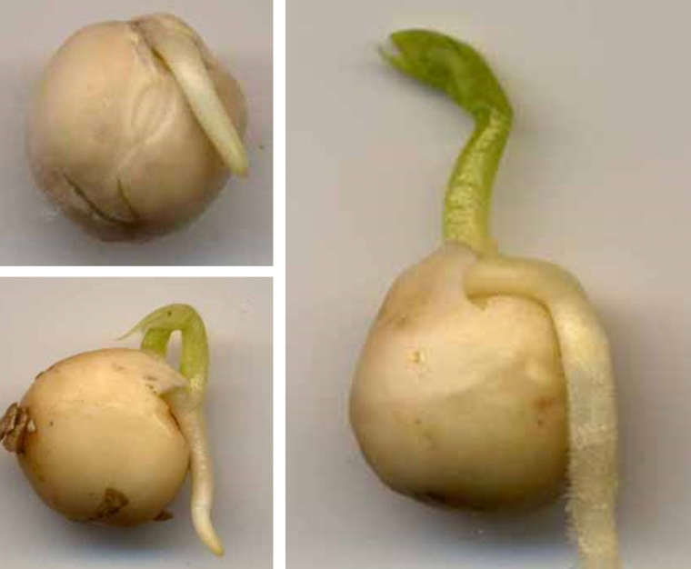 Vous trouverez ci-dessous trois étapes de la germination d’une graine de petit pois.
