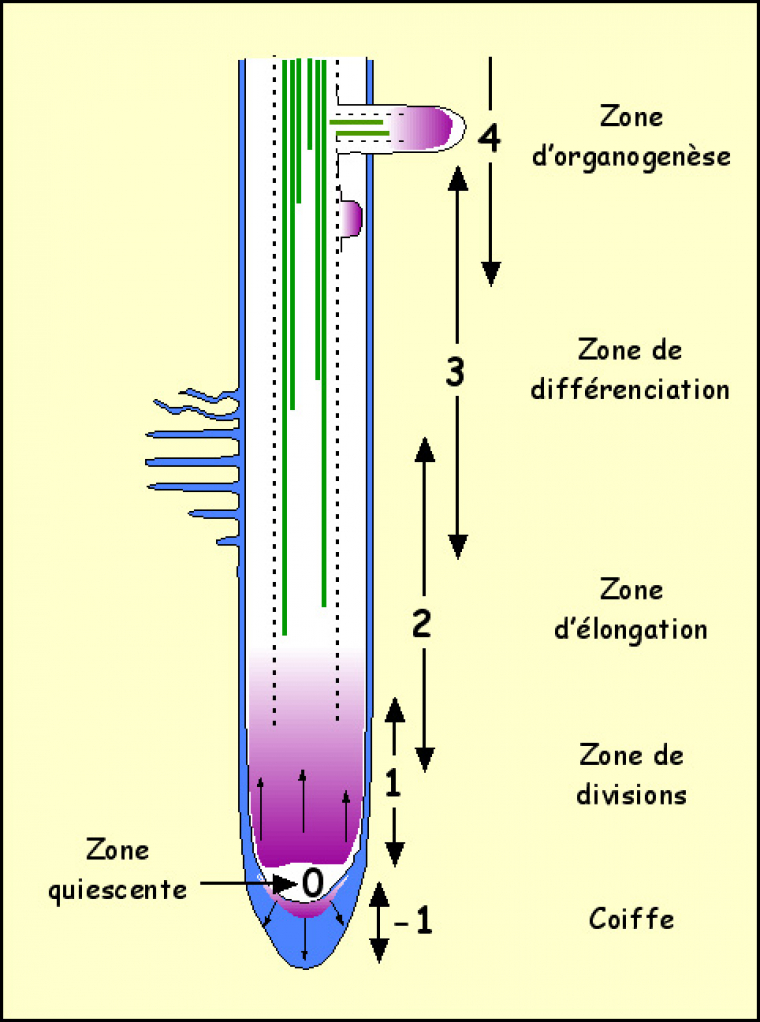 La zone de croissance observée par Sachs correspond principalement à la zone de division et à la zone d’élongation, l’ensemble de ces zones se trouvant bien en position subterminale.