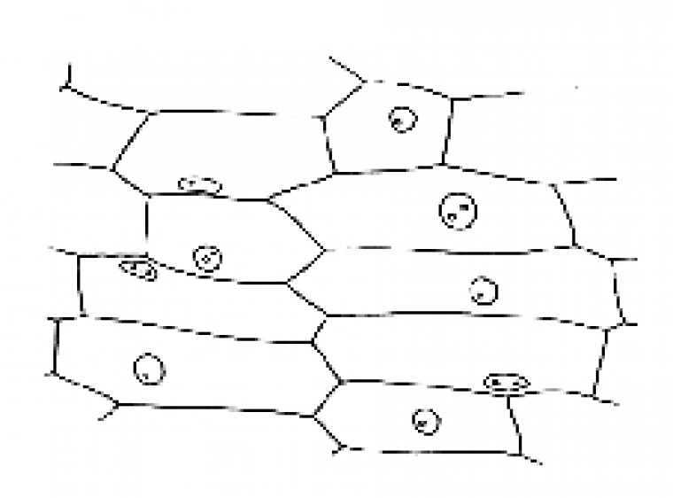 C) Isolement de _________________ 8- Lorsque le liquide a achevé de s’écouler, versez doucement une hauteur égale d’alcool à brûler. 9- Une substance blanche se forme dans l’alcool au contact des deux liquides. C’est l’ADN qui précipite pour former ce que les biochimistes appellent la « méduse ». 10- À l’aide de la cuillère déposez cette méduse sur une lame de verre. Versez un peu de vert de méthyle dessus. |