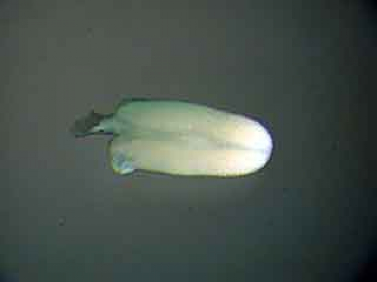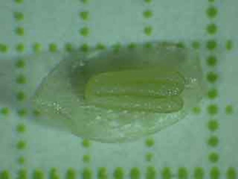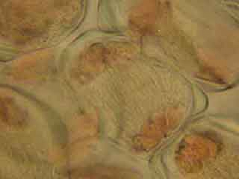 Sur cette anthère de couleur uniforme on ne peut pas distinguer, par transparence, les microsporocytes (cellules mères des microspores).