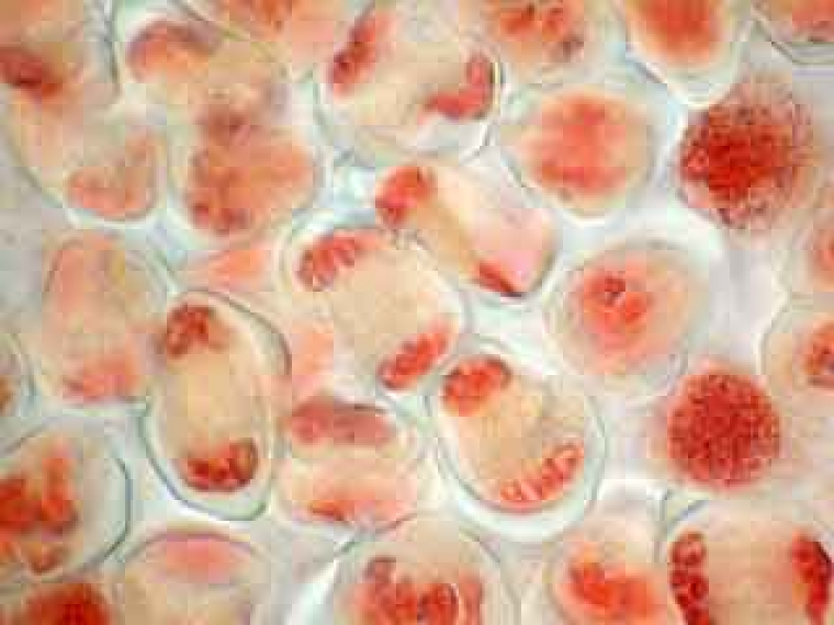 A plus fort grossissement, les cellules mères du pollen sont parfaitement visibles.