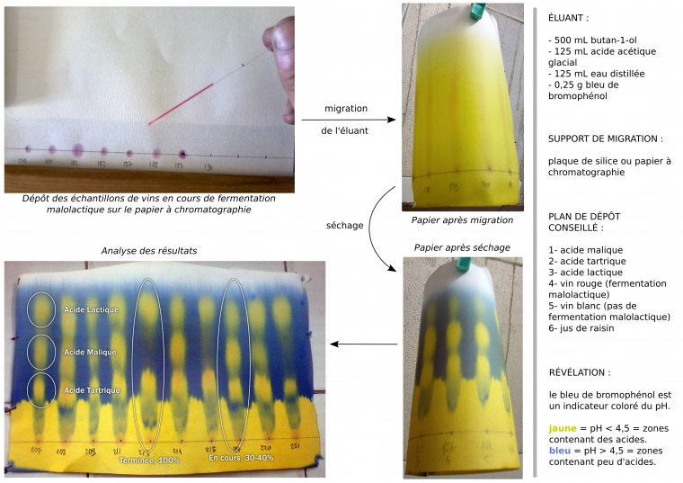 Le suivi de la fermentation malolactique se fait facilement par chromatographie sur couche mince.