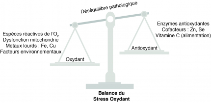 Le dioxygène est nécessaire à la vie de toute cellule de l’organisme. Cependant, les produits du métabolisme du dioxygène, appelés espèces réactives oxygénées (ROS en anglais), sont très toxiques pour la cellule. Ils incluent des radicaux libres comme l’O2•–(ion superoxyde), l'ion peroxynitrite ONOO–, le radical hydroxyle HO• et d’autres espèces moléculaires comme le peroxyde d’hydrogène H2O2. Ces composés ont un potentiel redox très important et peuvent donc très facilement oxyder les molécules avoisinantes comme les protéines, les lipides ou l’ADN, ce qui peut être délétère. C’est tout l’équilibre de la cellule qui est alors perturbé. Cependant il existe normalement un système de protection qui permet d’éliminer ces composés toxiques.