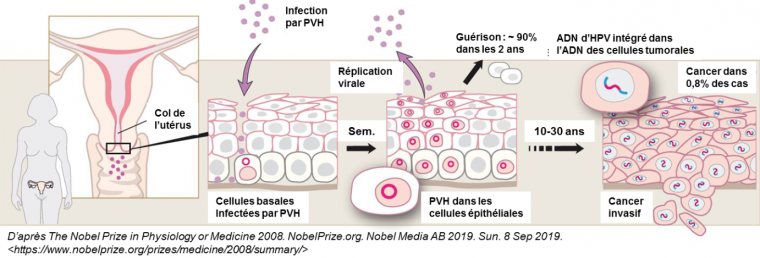 Aujourd’hui, il est établi que l’infection par certains types de papillomavirus humains, dits PVH à haut risque (PVH HR), précède les lésions précancéreuses et qu’elle est la cause nécessaire du cancer du col de l’utérus ainsi que celle de nombreux autres cancers (vulve, pénis, anus…), sur la base d’arguments épidémiologiques, biologiques et vaccinaux.