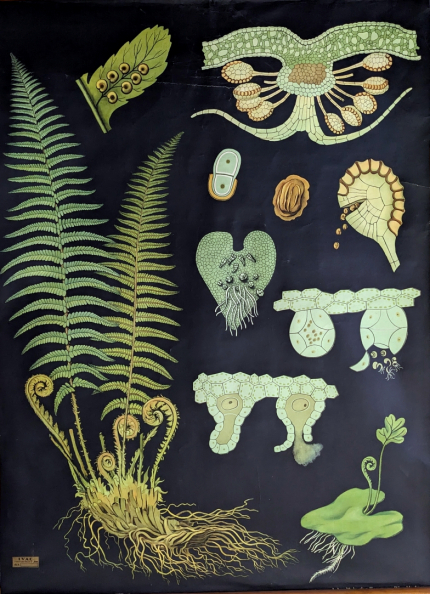 Le cycle de vie du polypode est partagé par de nombreuses fougères. Il s’agit d’un exemple classique des cours de biologie, ce qui explique la présence d’anciennes planches pédagogiques dans divers établissements supérieurs ou secondaires (Figure 13).
